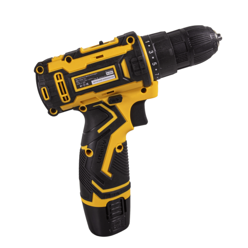 Скорость вращения регулируется в диапазоне от 400 до 1400 об/мин. Благодаря реверсу можно не только закручивать, но и выкручивать крепеж, а также легко извлекать сверло. Подсветка помогает работать в условиях низкой освещенности. Модель идет с одним аккумулятором в комплекте и без кейса.