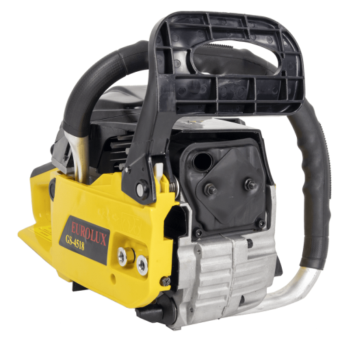Цепная пила на бензиновом топливе модели Eurolux GS-4518 оснащена двухтактным двигателем мощностью 2300 Вт с воздушным охлаждением, объём её топливного бака составляет 550 мл. Она проста и удобна в управлении, а наличие антивибрационной системы обеспечивает оператору комфорт даже при длительной работе.