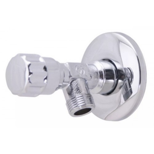Кран угловой для смесителей хромированный, в комплекте с декоративной чашкой.