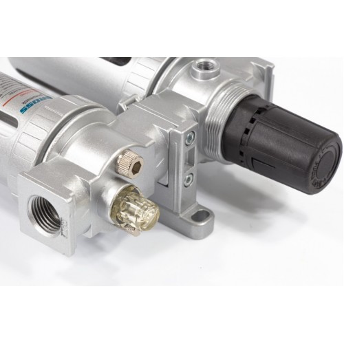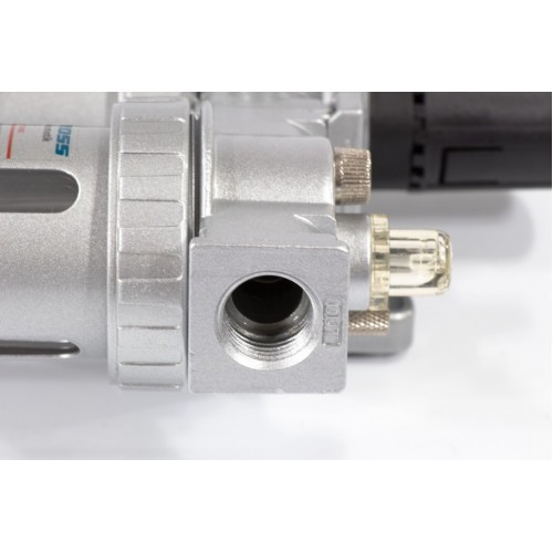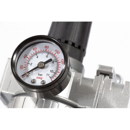 Регулятор давления Gross 57451 применяется совместно с компрессорами. Предназначен для очистки воздуха от влаги, регулировки давления и насыщения воздуха маслом для смазки пневмоинструмента. Оснастка имеет с двух сторон резьбу - Female 1/2". Рассчитан для компрессоров с давлением до 10 атмосфер.