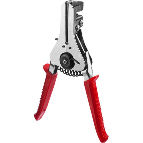 Стриппер полуавтоматический MIRAX 22688, предназначен для снятия изоляции без повреждения внутренних жил. Стрипперы полуавтоматические MIRAX для кабеля, изготовлены из качественной стали с закалкой рабочих поверхностей, предназначены для профессионального применения. Обладают повышенным ресурсом, обеспечивают хорошее качество электромонтажных работ. Снятие изоляции с многопроволочных и моножильных проводов сечением 0.5–2.5 мм². Пятипозиционные прецизионно заточенные лезвия. Возвратная пружина.