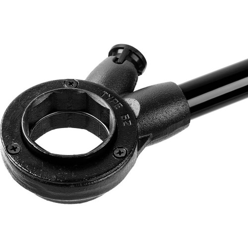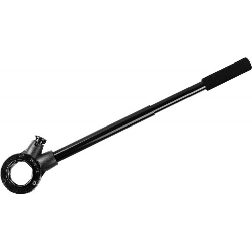 Трещотка с удлинителем к клуппам MIRAX 28245, предназначена для нарезания правой трубной конической резьбы на металлических трубах стандартного диаметра.