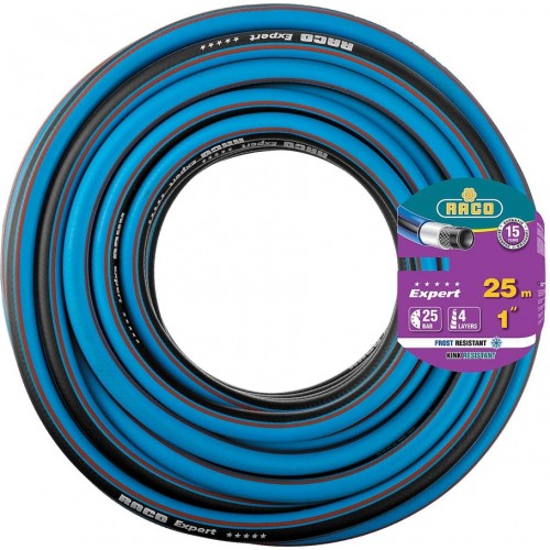 Шланг поливочный RACO EXPERT 40302-1-25_z01, предназначен для полива растений на садово-огородных участках. Четырехслойная структура шланга обеспечивает высокое максимальное давление на разрыв. Качественное армирование шланга обеспечивает стабильность формы при высоком давлении, а также предотвращает его перекручивание. Высококачественные материалы не содержат кадмий и барий. Внутренний слой шланга препятствует образованию водорослей. Шланг обладает высокой гибкостью и защищен от ультрафиолетовых лучей. Давление на разрыв - 25 атм. Рабочее давление - 8 атм. Шланг морозостойкий с допустимым перепадом температур от -30 °С до +50 °С.