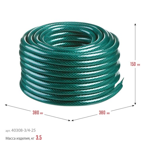 Шланг для полива армированный РОСТОК 40308-3/4-25_z01, предназначен для поливочных работ на садово-огородном участке. Трехслойный эластичный шланг изготовлен из высококачественного ПВХ и армирован прочными нейлоновыми нитями. Благодаря особой технологии армирования достигается высокая устойчивость формы шланга. Поверхность шланга не восприимчива к ультрафиолетовым лучам. Шланг является экологически чистым изделием - не содержат кадмий и барий. Внутренняя поверхность шланга исключает возможность возникновения водорослей.