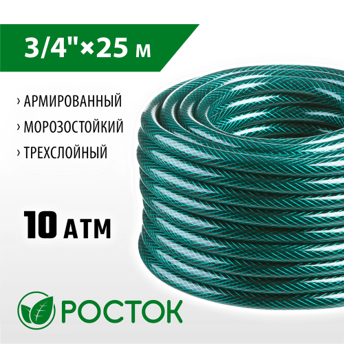 РОСТОК 3/4", 25 м, 10 атм, трёхслойный, армированный, поливочный шланг (40308-3/4-25_z01)