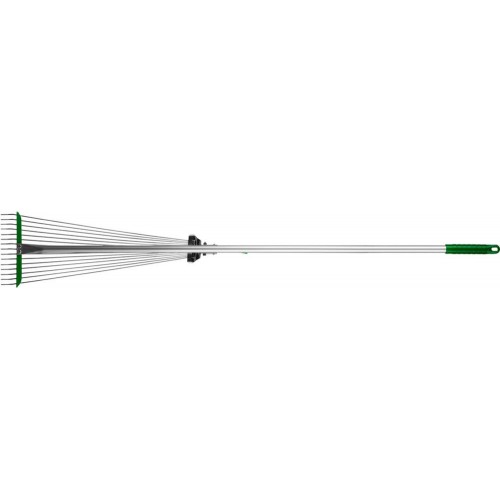 Грабли веерные с алюминиевым черенком POCTOK РВ-15, предназначены для очистки газонов от скошенной травы и листьев. Тип зубцов: круглые. Ширина рабочей части: 170-570 мм. Материал черенка: алюминий.