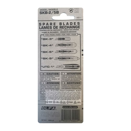 Надежные и острые безопасные лезвия OLFA SKB-2/5B с двумя кромками. Лезвия изготовлены из высококачественной японской инструментальной стали и профессионально заточены для обеспечения превосходной остроты и непревзойденной долговечности режущей кромки.