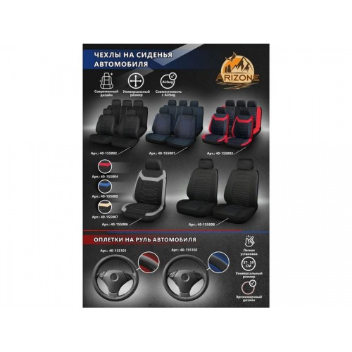 Чехол на сиденье автомобиля универсальный, полиэстер, черно-красный, ARIZONE
