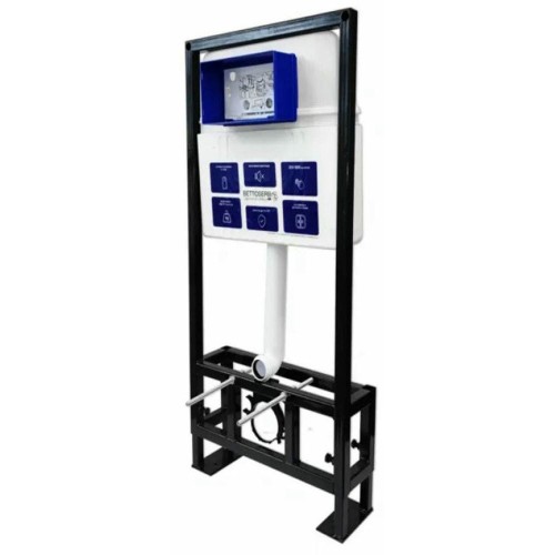 Система инсталляции для унитаза Bettoserb Free Standing в комплекте с клавишей смыва – это европейское качество и надежность, подтвержденные тестами и сертификатами. Инсталляция крепится к полу и выдерживает до 400 кг. Система подходит практически к любым подвесным унитазам и благодаря межосевому расстоянию под крепежные шпильки 18 и 23 см. Благодаря регулируемой высоте вы можете установить инсталляцию на неровную поверхность.