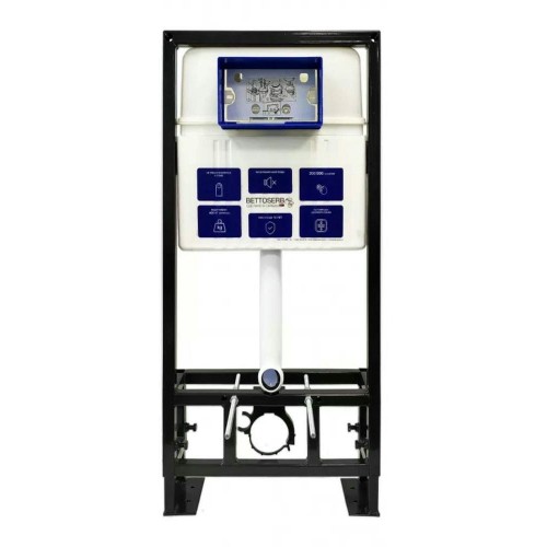 Система инсталляции для унитаза Bettoserb Free Standing в комплекте с клавишей смыва – это европейское качество и надежность, подтвержденные тестами и сертификатами. Инсталляция крепится к полу и выдерживает до 400 кг. Система подходит практически к любым подвесным унитазам и благодаря межосевому расстоянию под крепежные шпильки 18 и 23 см. Благодаря регулируемой высоте вы можете установить инсталляцию на неровную поверхность.
