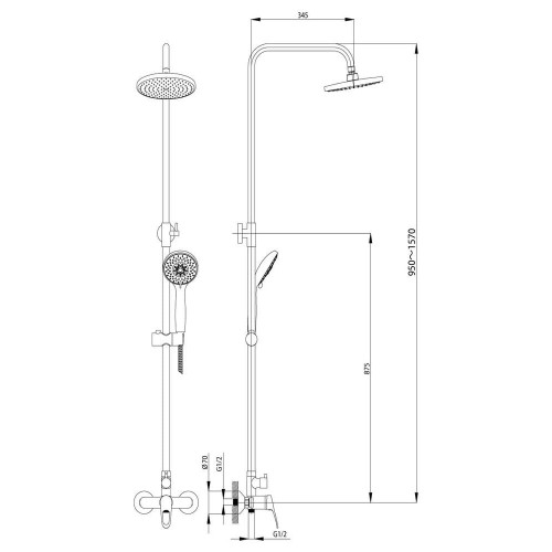 Смеситель Rossinka д/душа B35-45 с регулируемой высотой штанги и лейкой "Тропический дождь"