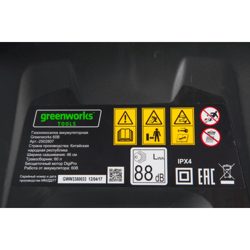 Газонокосилка Greenworks GD60LM46HP 60V (46 см) бесщеточная аккумуляторная