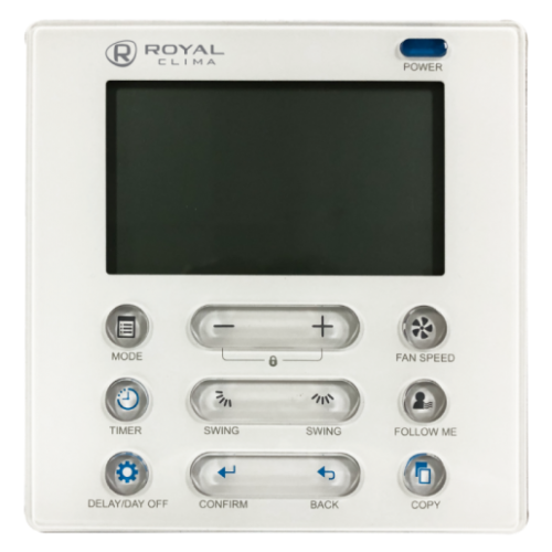 Проводной пульт управления RCW-100 имеет понятный и современный интерфейс. RCW-100 оснащен цифровым дисплеем, отображающим все параметры работы устройства. Пульт совместим с полупромышленными сплит-системами серии ESPERTO, и внутренними блока канального и кассетного типов серии MULTI FLEXI EU ERP.