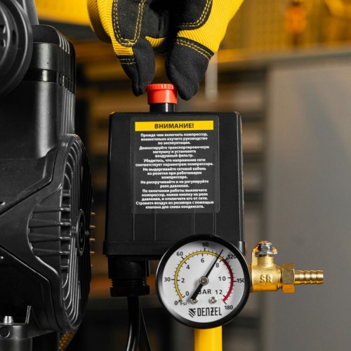 • Автономность — специальное реле останавливает компрессор по достижении максимального рабочего давления и запускает двигатель при падении давления до минимального уровня.