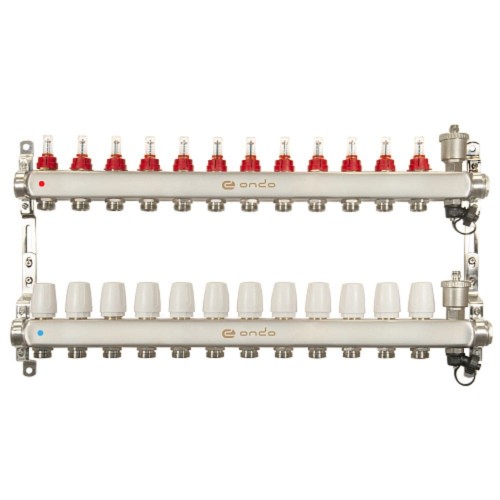 Группа коллекторная ONDO нерж сталь 12 вых. с автомат. воздухоотвод., расход. и термостат. клапанами