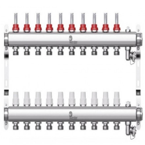 Коллекторы Wester W902 из нержавеющей стали с расходомерами и запорными клапанами предназначены для оптимизации и контроля распределения теплоносителя в системах радиаторного отопления и подогрева пола.