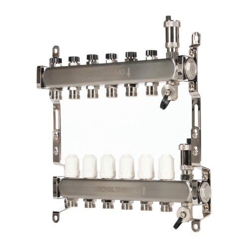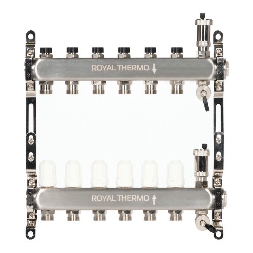 Коллектор Royal Thermo нерж. в сборе универсальный 1" ВР-3/4" НР с автомат. воздухоотвод-ми 6 вых.