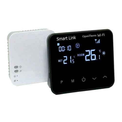 Основные преимущества термостата Smart Link: Работает с электрическими котлами BAXI Ampera Plus и AMPERA Pro Работает с газовыми котлами BAXI и De Dietrich с протоколом OpenTherm Возможность суточного и недельного программирования мощности электрического котла для максимального использования выгоды от многотарифного подключения к электричеству Управление температурой помещения с возможностью суточного и недельного программирования Снижение расходов на отопление Управление температурой в контурах отопления и ГВС Питание термостата от двух батарей AAA или через порт USB-С Оповещение об аварии котла и отключении электричества* * оповещения посредством СМС – платная услуга