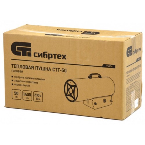 Газовая тепловая пушка СТГ-50, 50 кВт, 1400 м3/ч, пропан-бутан СИБРТЕХ 96454
