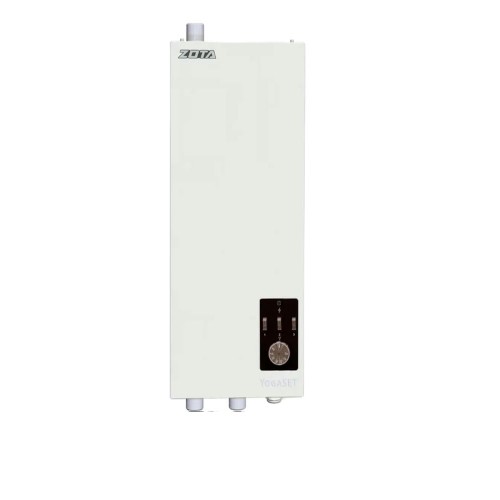 Электрический котел Zota YOGASET — больше чем электрокотел, это целая мини-котельная, предназначенная для эксплуатации в системах отопления. Сборное изделие, в состав которого входят – электрический котел, циркуляционный насос, предохранительный клапан, воздухоотводчик и манометр. Данное комплексное решение делает компактным не только сам котел, но и обвязку системы отопления в целом, что позволяет сэкономить место в помещении, и легко установить даже в небольших котельных. Котел устанавливается на стену и подключается к электросети напряжением 220/380. Одной из главных отличительных особенностей котла от всех прочих является наличие трех соединительных патрубков вместо двух, что делает котел самым уникальным на рынке с точки зрения универсальности и удобства врезки в систему отопления. Термостат с датчиком температуры теплоносителя гильзованным внутрь колбы котла обеспечивают высокую точность поддержания заданной температуры теплоносителя в диапазоне от 25 до 85 градусов. Колодка внешнего термостата позволяет эксплуатировать котел не только по температуре теплоносителя, но и по комнатной температуре – что существенно увеличит условия комфорта, а также до 30% дополнительно снизит расход электроэнергии на отопление. Модель обладает высокой надежностью. Во-первых, у котла имеется резервный самовозвратный датчик перегрева теплоносителя, срабатывающий на 95 градусах, во-вторых, установлен надежный электромагнитный пускатель на 25А, встроенный в цепь питания котла и, в-третьих, дополнительный предохранитель для защиты цепи питания котла.