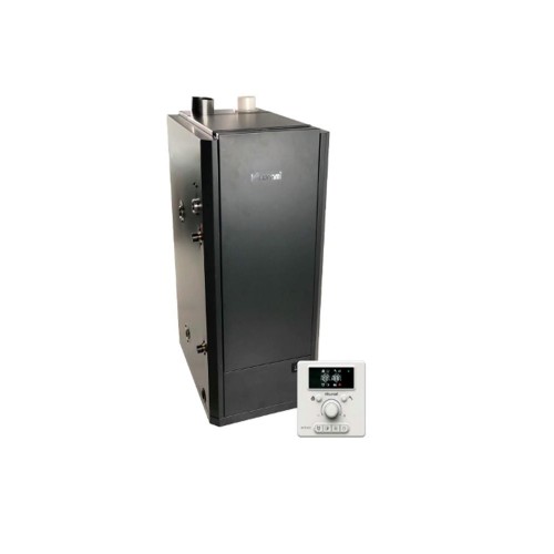 Двухконтурный котел с теплообменником из нержавеющей стали, наддувной горелкой и возможностью подключения бойлера. Выносной пульт управления в комплекте. Теплообменник из нержавеющей стали