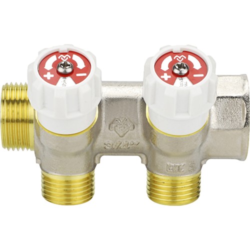 • Коллектор распределительный VARMEGA с запорными клапанами 3/4 х3/4, 2 выхода, евро конус