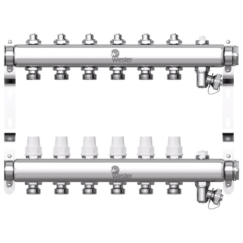• Коллектор нерж. Wester 1"-3/4 в сборе на 6 выходов, 2 заглушками