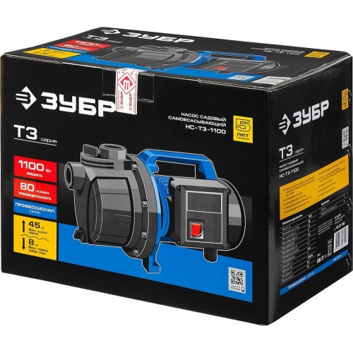 Насос Т3 садовый поверхностный ЗУБР НС-Т3-1100, применяется для перекачивания воды на садовых участках при осушении емкостей и водоемов, организации забора воды с глубины (колодцы, скважины) и подачи на высоту, использовании в системах аэрации и дренажа в течение ограниченного периода времени. Высокая мощность всасывания и способность выдерживать высокое давление, термопредохранитель для защиты двигателя, высокие эксплуатационные свойства делают насос идеальным инструментом при осушении емкостей и водоемов, организации забора воды из колодца и подачи на высоту. Для увеличения срока службы насоса используются материалы только высокого качества. П Двигатель с увеличенным ресурсом и медной обмоткой способствует работе в интенсивном режиме на протяжении более 5 лет. Однофазный двигатель имеет защиту от перегрузки. Может стать основой насосной станции (при комплектации баком и выключателем давления). Влагозащищенный выключатель. Предусмотрена удобная ручка для переноски агрегата.