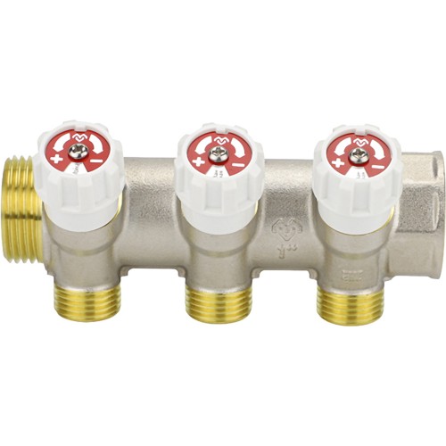 Коллектор распределительный VARMEGA с запорными клапанами1х3/4, 3 выхода, евро конус