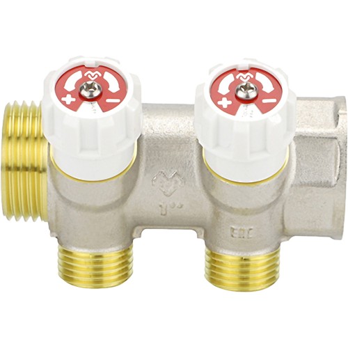 Коллектор распределительный VARMEGA с запорными клапанами 1х1/2, 2 выхода