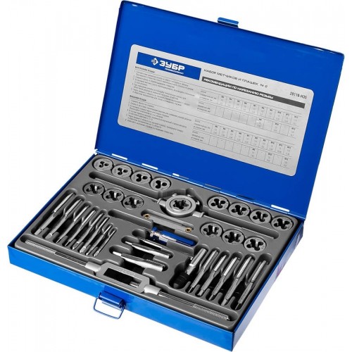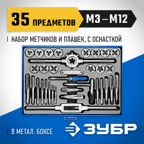 Набор резьбонарезной ЗУБР 28110-H35, предназначен для нарезания внутренней и внешней метрической резьбы, не требующей чистовой доводки на металлических изделиях и восстановления ее поврежденных участков. Использование качественных материалов и современного оборудования гарантирует высокий рабочий ресурс и удобство при нарезании резьбы.