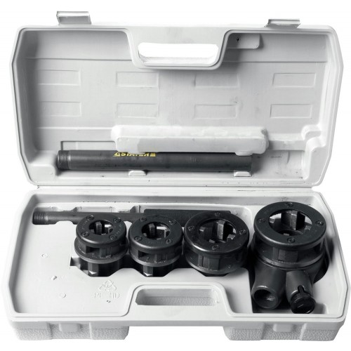 Набор резьбонарезной трубный STAYER 28260-H4, предназначен для нарезания трубной конической резьбы. Набор включает в себя популярные размеры клуппов для нарезания резьбы на металлических трубах. Качественные резцы из стали 9Cr2 для ровного реза резьбы. Удобный пластиковый кейс для хранения и транспортировки. Двухкомпонентная ручка трещотки с реверсом для удобства в использовании.