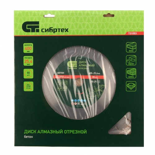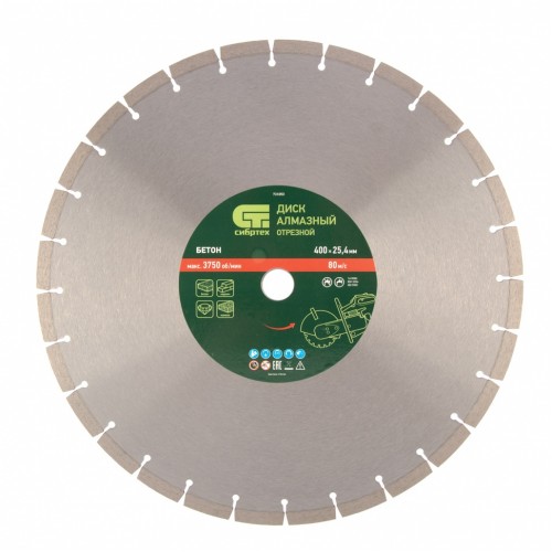 Диск алмазный 400 х 25,4 мм, "Бетон", сухой/мокрый рез СИБРТЕХ 731053