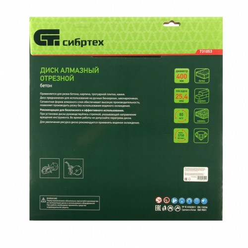 • Алмазный диск ТМ Сибртех применяется для резки бетона, кирпича, тротуарной плитки, камня и др. материалов.