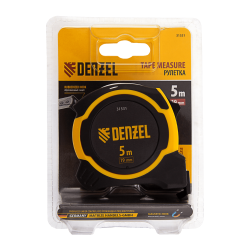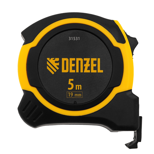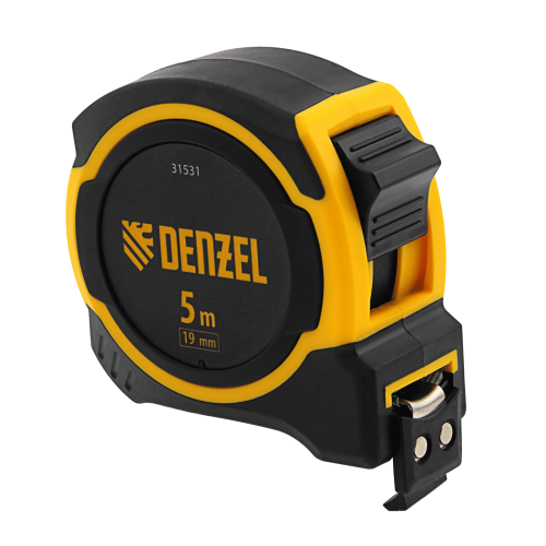 Рулетка DENZEL 5м х 19мм, двухкомп. корпус, магнитный обрезиненный зацеп