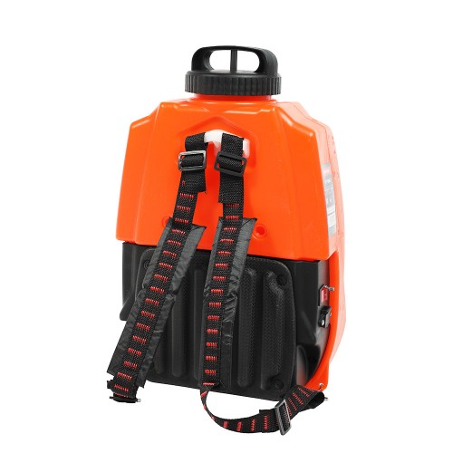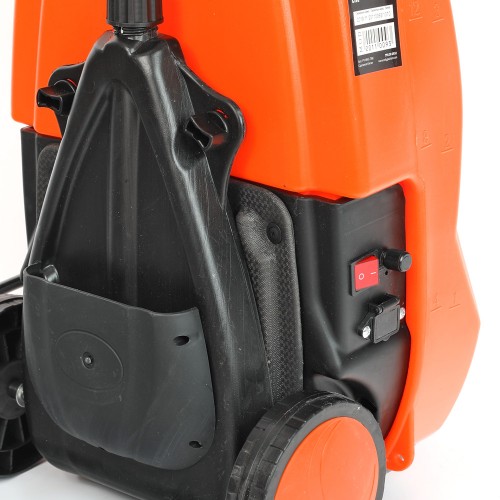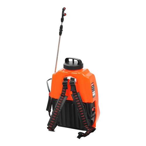 PT-18AC – аккумуляторный ранцевый садовый опрыскиватель с 16-ти литровым баком для жидкости и транспортировочной тележкой. Применяется для бережного орошения или обработки удобрениями садовых растений. Бак изготовлен из материалов, устойчивых к агрессивным веществам. Жидкость заправляется через широкую горловину с фильтром. Для облегчения перемещения предусмотрена тележка. А комфорт ношения обеспечивают ранцевые ремни и вставка под спину. Подобрать силу подачи раствора можно регулятором, а нужный режим опрыскивания осуществляется заменой форсунки. Телескопическая штанга позволяет дотянуться до верхних веток деревьев. Одного заряда аккумулятора хватает на несколько циклов опустошения бака. Индикатор напряжения батареи расположен на корпусе.