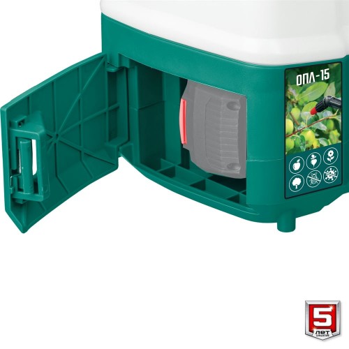 Опрыскиватель аккумуляторный ЗУБР ОПЛ-15, предназначен для обработки и полива растений, проведения дезинфекции, уборки помещений, мойки автомобиля. Ранцевый аккумуляторный распылитель отличается эффективностью, мобильностью, экологичностью. Бережно орошает растения. Имеется единая аккумуляторная система С1-18В для множества инструментов. Объем бака - 15 л. Широкая горловина бака - легкое заполнение жидкостью.