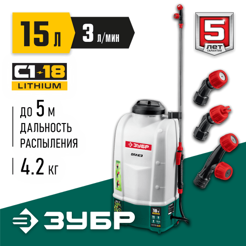 ЗУБР 18 В, Li-Ion, 15 л бак, без АКБ, опрыскиватель аккумуляторный ОПЛ-15 Мастер