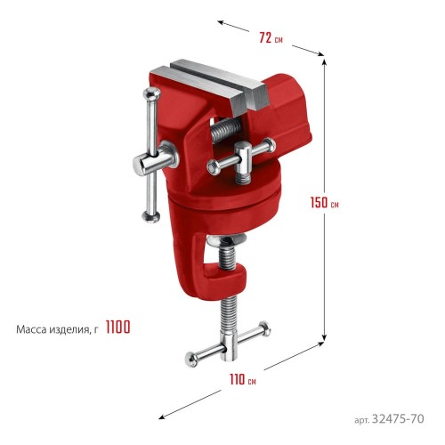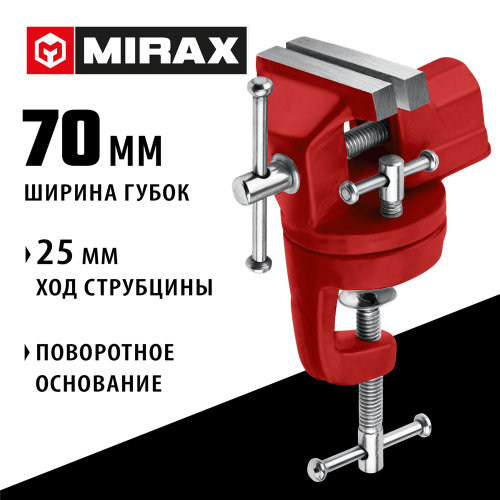 Настольные поворотные тиски для точных работ MIRAX 32475-70, предназначены для закрепления деталей при выполнении различного вида точных слесарных, механических и ювелирных работ. Поворотное основание позволяет перемещать корпус тисков в горизонтальной плоскости и фиксировать его в необходимом положении. Ход струбцины 25 мм.