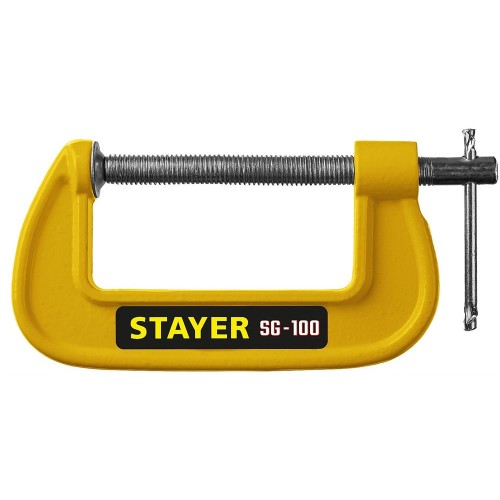Струбцина STAYER 3215-100_z02, предназначена для надежной фиксации деталей и заготовок. Корпус изготовлен из закаленной стали.