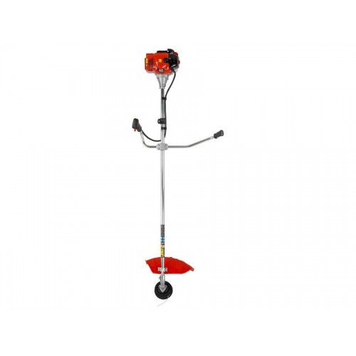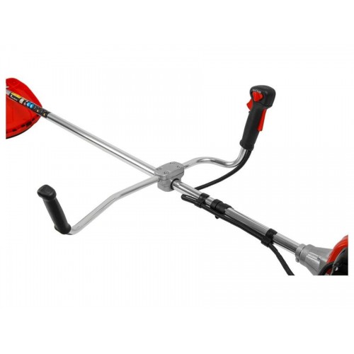 ■ Цельная штанга диаметр 28 мм ■ Многофункциональная и эргономичная рукоятка велосипедного типа ■ Эффективная антивибрационная система ■ Использование улучшенного (усиленного) ручного стартера с системой лёгкий запуск ■ Цельнометаллический приводной вал ■ Редуктор повышенной прочности ■ Топливный бак с полупрозрачными стенками ■ Праймер (система лёгкого запуска) ■ Ударопрочный корпус двигателя ■ Комбинированный защитный кожуху из прочного пластика ■ Усиленная полуавтоматическая косильная катушка с безразборной заправкой лески ■ Прочный четырехлопастной нож ■ Двухплечный ремень для большего комфорта при работе ■ Два поршневых кольца для высокой компрессии.Мощная и удобная модель для продвинутых пользователей, которые по достоинству оценят внушительный потенциал мотокосы. Удобная и эргономичная рукоятка триммера изготовлена в виде велосипедного руля и может устанавливаться в различных положениях, это обеспечивает максимальную управляемость и уменьшает нагрузку на опорно-двигательный аппарат оператора. Блок управления находится на одной ручке, кнопки доступны и располагаются точно под пальцами оператора. Цельная штанга изготовлена из легкого алюминия, что повышает прочность конструкции, снижая её вес. Штанга оснащена антивибрационными демпферами, поглощающими вибрацию и уменьшающими нагрузку на кисти и предплечья. Жесткий приводной вал дает возможность использовать в работе нож или диск. Конический редуктор имеет избыточный запас прочности и способен выдерживать большие нагрузки. При этом редуктор легко отсоединяется, что позволяет использовать двигатель мотокосы в качестве силового агрегата. Топливный бак имеет полупрозрачные стенки для удобства контроля за уровнем топлива. Мотокоса снабжена праймером для предварительной подкачки топлива, который облегчит запуск мотора. Корпус двигателя выполнен из специального ударопрочного пластика и защищает от внешних механических воздействий. Широкий защитный кожух защищает оператора от выброса травы, камней и других вылетающих из-под режущего инструмента предметов. Надёжная полуавтоматическая катушка обеспечивает лёгкую подачу корда и заправляется новой леской без разборки корпуса. Прочный четырёхлопасной нож с лёгкостью справится с дикорастущей травой и кустарником. Два поршневых кольца создают стабильную компрессию, увеличивают срок службы цилиндро-поршневой группы.