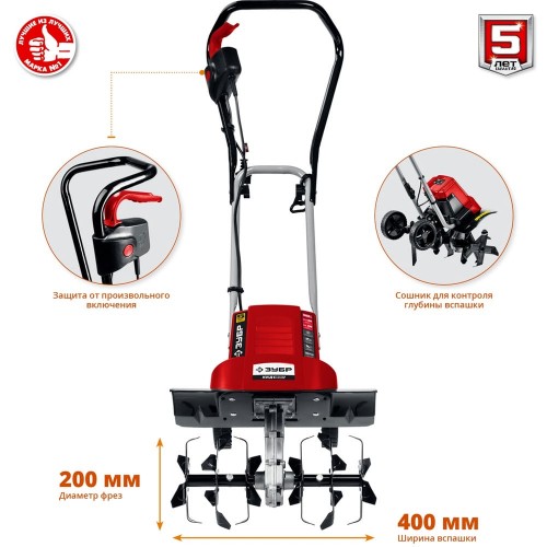 ЗУБР 1800 Вт, 400 мм ширина обработки, 1 скорость, культиватор электрический ККД-1800 Мастер
