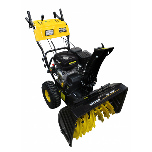Рабочая система снегоуборщика Huter представляет собой снегозаборный желоб со шнеком, а также вентилятор в форме крыльчатки и желоб для выброса снега (кроме SGC 3000). Агрегат приводится в действие четырехтактным поршневым одноцилиндровым бензиновым двигателем внутреннего сгорания с воздушным охлаждением.