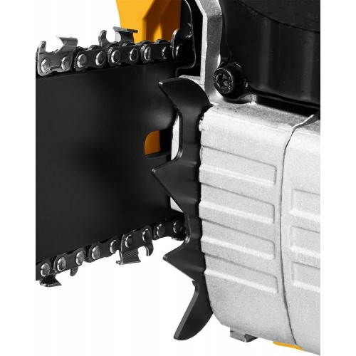 - Тормоз мгновенного действия обеспечивает высокую безопасность работ, мгновенно останавливая пильную цепь в случае опасности