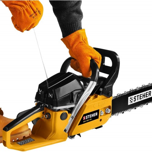 Пила цепная бензиновая STEHER BS-58-45, предназначена для периодических работ на приусадебном участке: спил старых деревьев, удаление разросшихся ветвей, заготовка дров и т. п. Современный инструмент с простым и надежным двигателем, эффективной антивибрационной системой и продуманной формой рукояток. Отличное решение по уходу за садовым участком. Электронная система зажигания обеспечивает ровную, экономичную и экологичную работу двигателя. Насос принудительной подачи смазки к цепи уменьшает износ, что увеличивает срок службы цепи и шины. Тормоз мгновенного действия обеспечивает высокую безопасность работ, мгновенно останавливая пильную цепь в случае опасности.