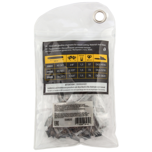Цепь для бензопилы DENZEL DGS-5218 59805, шина 45 см, шаг 0.325, паз 1.5 мм, 72 звена