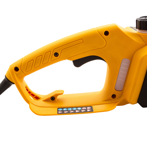 • Блокировка случайного пуска — к работе с электроинструментом важно приступать подготовленным, поэтому двигатель запускается при нажатии основного выключателя одновременно с блокиратором на задней рукоятке.