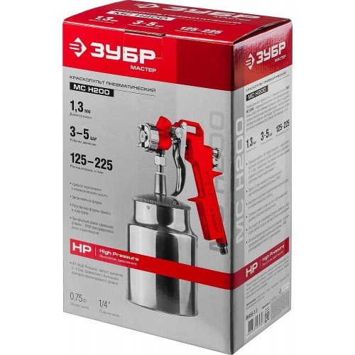 Краскопульт пневматический ЗУБР 06456-1.3, предназначен для проведения окрасочных работ. Качественные материалы сопла и воздушной головки обеспечивают высокий ресурс. Краскопультом комфортно работать благодаря эргономичной форме и возможностью тонкой регулировки. Принцип работы HP (High pressure). Краскопульт высокого давления, требующий рабочего давления 3-5 бар. Но, при этом, производительность компрессора может быть относительно небольшая. Совместим с бытовыми компрессорами среднего уровня с невысокими рабочими характеристиками.