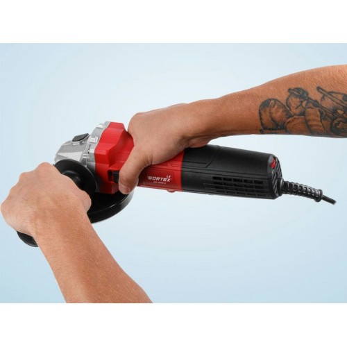 Одноручная углошлифмашина WORTEX LX AG 1209-4 в кор. 950 Вт, 125 мм, 3 000-11 000 об/мин. (рег.об., шариковый подшипник, блокировка шпинделя)
