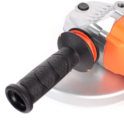 Надежная и мощная углошлифовальная машина предназначена для сложных работ с большими металлическими заготовками.  УШМ вынослива, благодаря безупречному качеству конструкции. Для удобства оператора задняя рукоятка допускает установку в 3ех различных положениях.